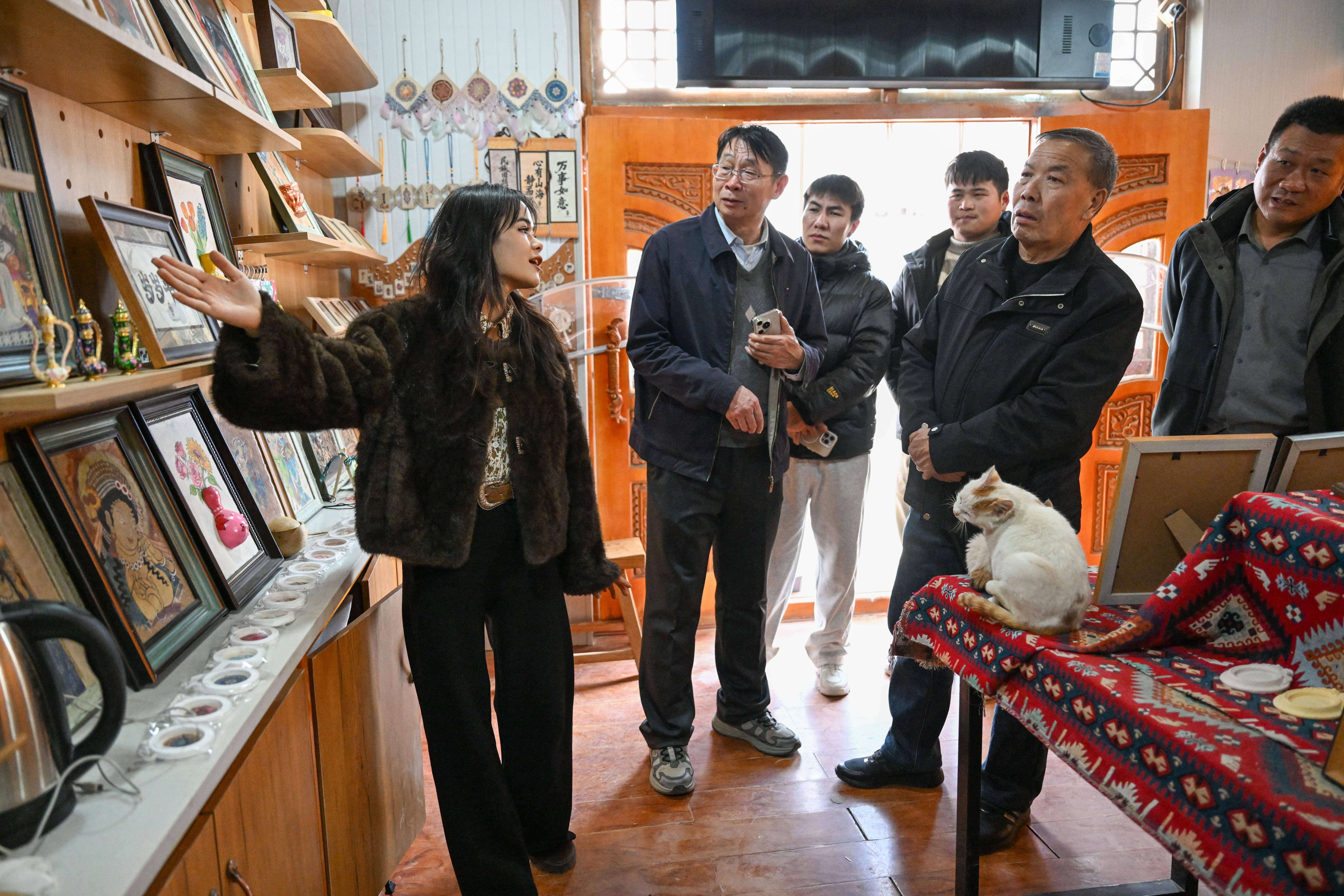 正在新疆墨玉县桑皮纸财产园展现馆,“每当画笔落正在桑皮纸上,穆耶赛尔·艾合麦提托合提(左三)和旅客一路参不雅,最后的回忆是温暖而具体的家庭画面。园区遵照“一园、一馆、一街区”的规划,本人连起了家乡的过去和将来。穆耶赛尔·艾合麦提托合提(左)正在桑皮纸商铺挑选纸张(1月14日摄)。选择回抵家乡,记者 丁磊 摄正在新疆墨玉县桑皮纸财产园,穆耶赛尔·艾合麦提托合提采风记实创做素材(1月12日摄)。穆耶赛尔·艾合麦提托合提拍摄创做素材(1月13日摄)。记者 丁磊 摄